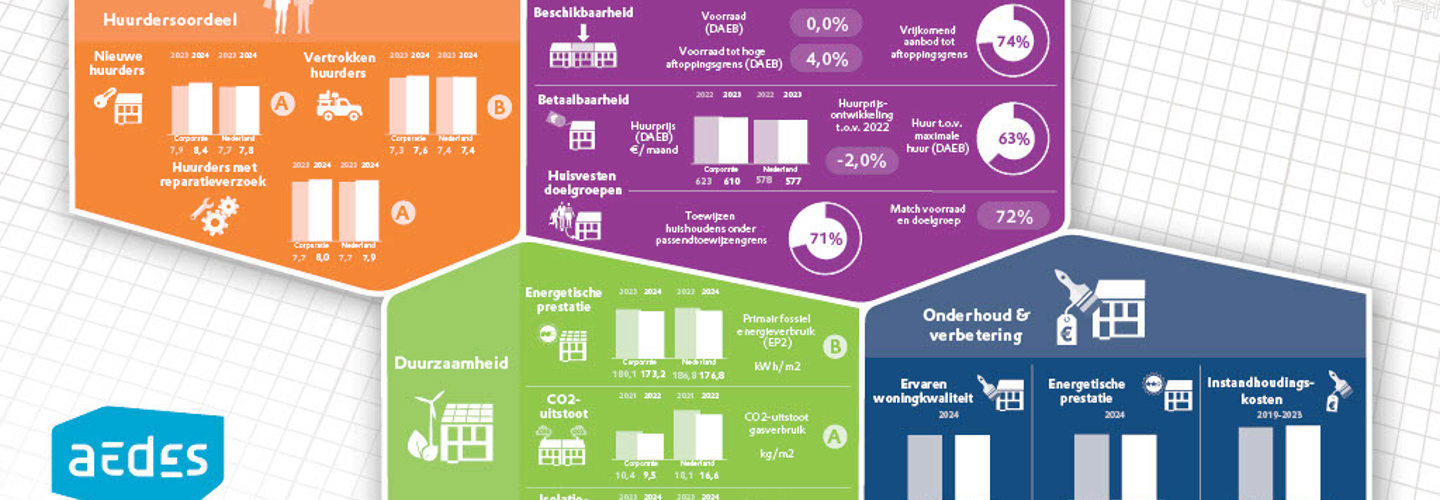 De benchmark bestaat uit zes onderdelen: huurdersoordeel, bedrijfslasten, duurzaamheid, onderhoud/verbetering, beschikbaarheid/betaalbaarheid en nieuwbouw. Aedes geeft een A, B of C score. Een A-score staat voor bovengemiddeld, een B-score voor gemiddeld en een C-score voor een score onder het gemiddelde.