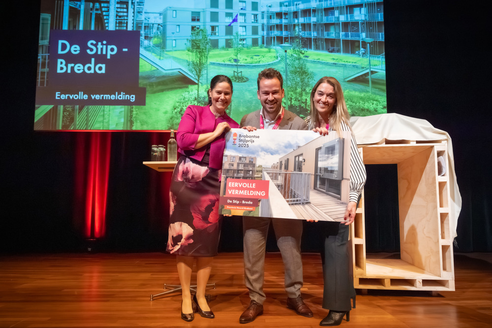 Tijdens de uitreiking van de Brabantse Stijlprijs 2025 heeft woonbuurt De Stip in Breda een eervolle vermelding ontvangen van de vakjury. De jury prijst het project vanwege de snelheid van realisatie, de schaal van bouwen en het lef om meerdere doelgroepen tegelijk te huisvesten.